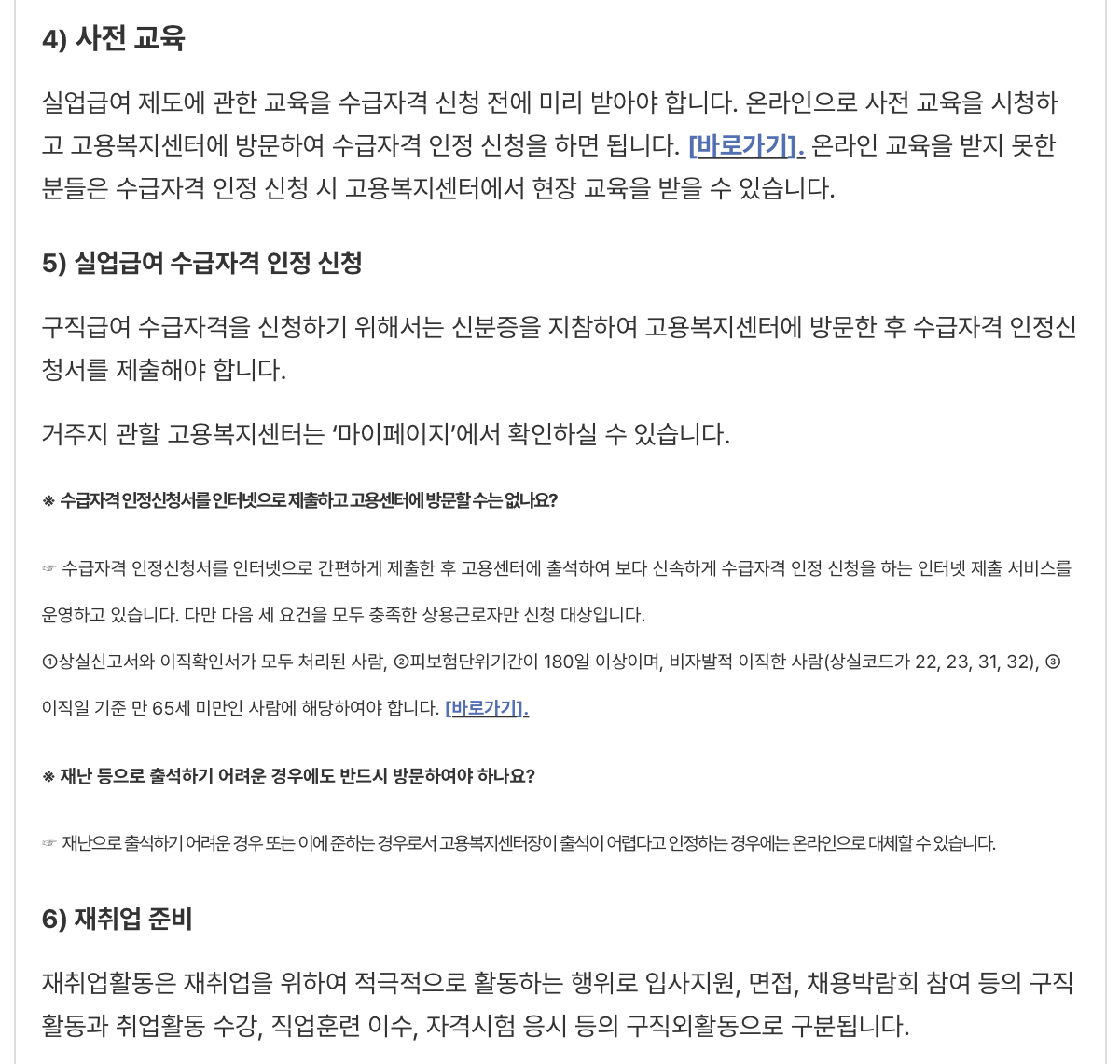 | (5) 실업급여 수급자격 인정 신청서를 제출함 |