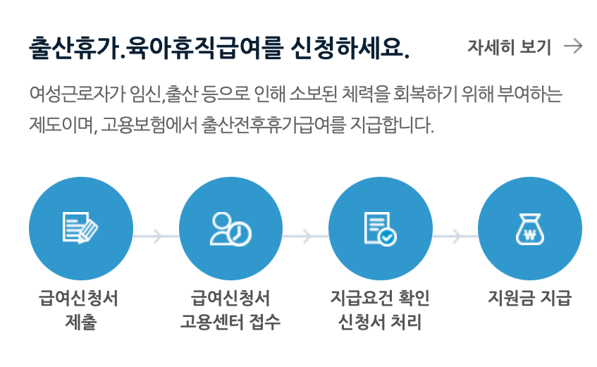 | 채용정보 | 취업지원 | 실업급여 | 직업 능력 개발 | 출산휴가/육아휴직 |