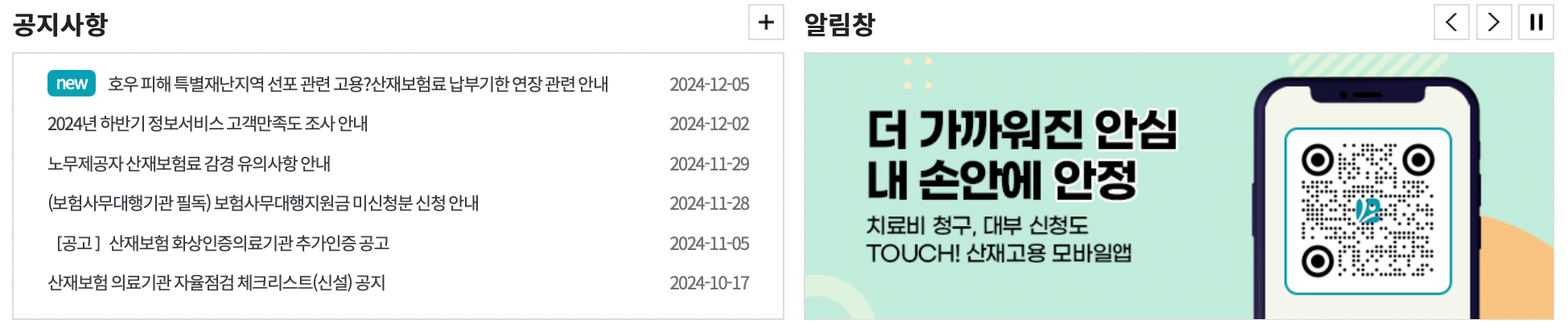 | 휴업급여 청구 | 산재환자 정보조회 | One-Click 산재상담 및 신청 |