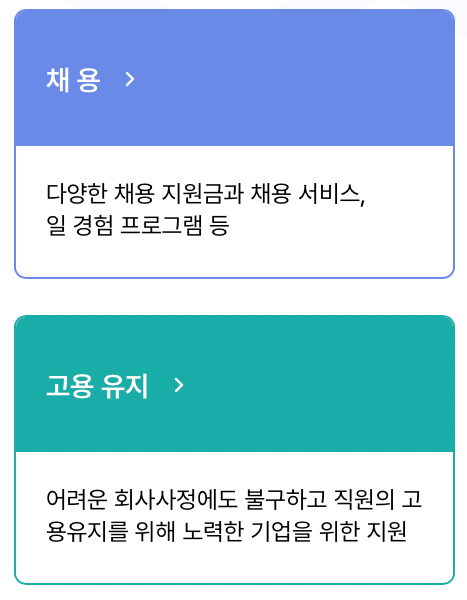 | 채용행사/강소기업 | 일경험/취업지원금 | 취업촉진수당 | 훈련 기관 강사 |