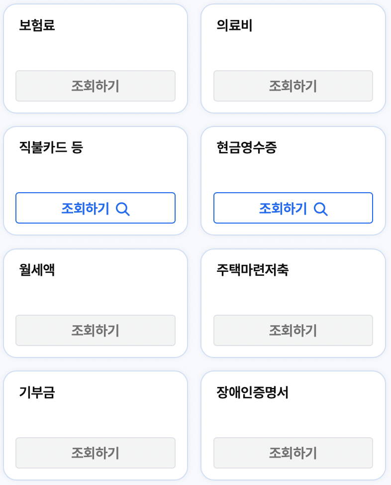 | 장기집합투자증권저축 | 폐업/소상공인 공제부금 | 기부금 | 장애인증명서 |