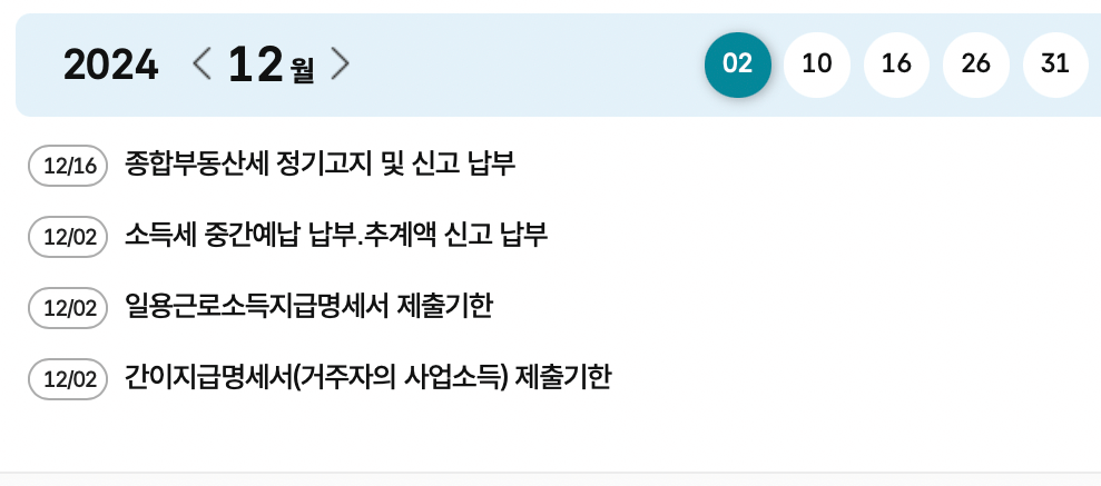 | 납부/고지/환급 | 장려금/연말정산/전자기부금 |