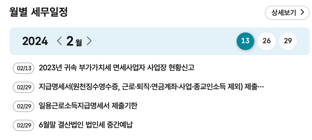 | 세금신고 | 납부 / 고지 / 환급 | 지급명세서 / 자료제출 / 공익법인 |