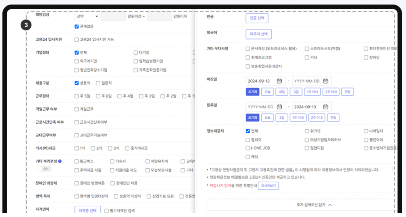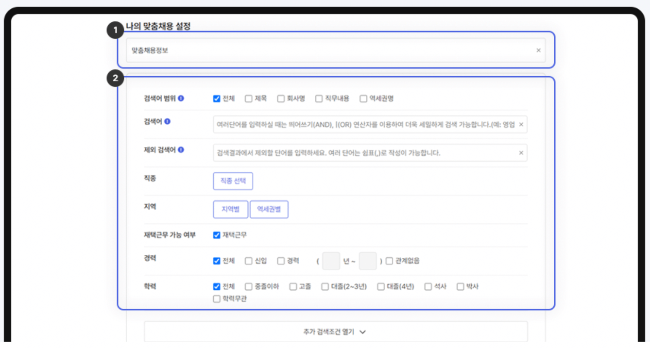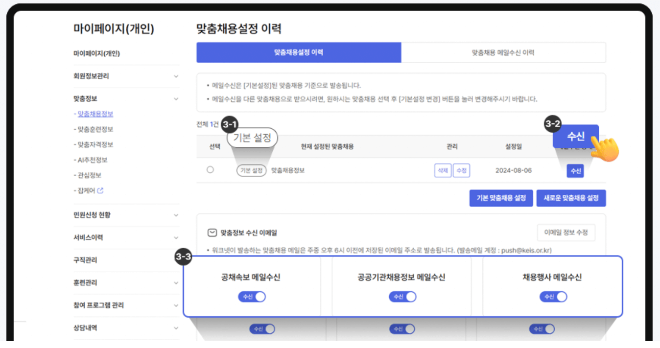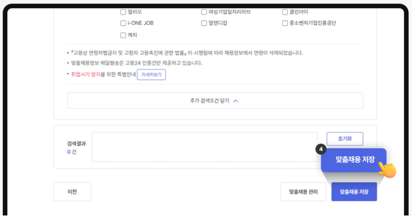 < 맞춤설정 목록 / 새맞춤채용 설정 / 맞춤 메일링 >