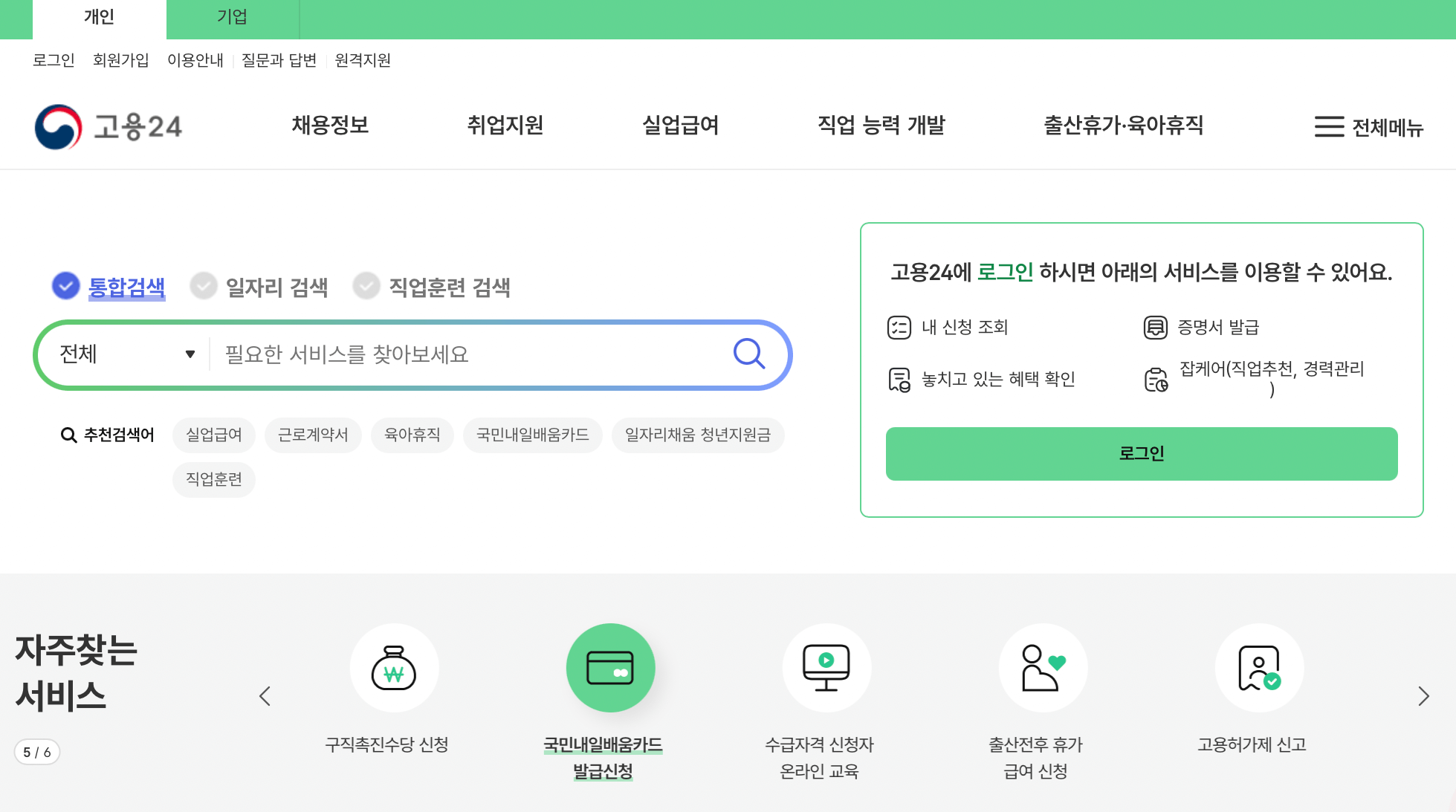 | 고용24 : 직업능력개발 (개인) | 고용24 : 직업능력개발 (기업) |
