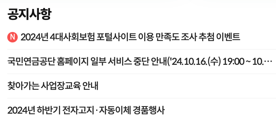 | 두루누리보험료지원 | 보수월액 변경 | 민원처리현황 조회 |