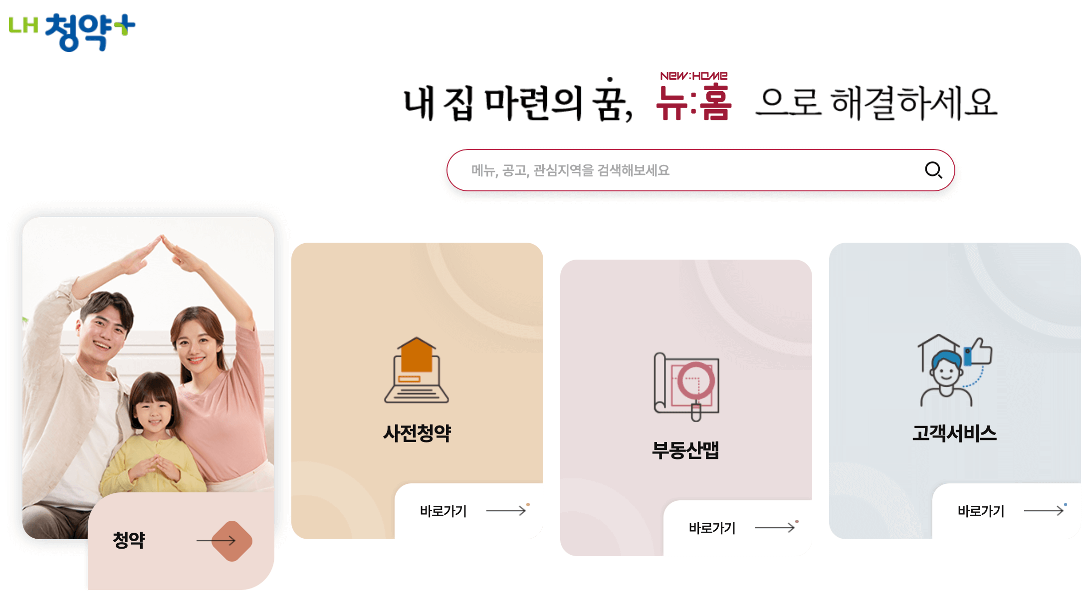 한국토지주택공사 'LH공사 홈페이지' 통해서 주거복지사업, 주택사업, 토지사업 등에 대한 정보를 확인하실 수 있습니다. 그리고 '청약플러스', '뉴홈', '마이홈', '내집어디' 사이트를 통해서 청약 조회 및 신청 등을 할 수 있습니다. 주택마련에 좋은 정보를 얻으시길 바랍니다. 아래의 이미지를 선택하면 'LH공사 홈페이지' 바로 이동합니다.