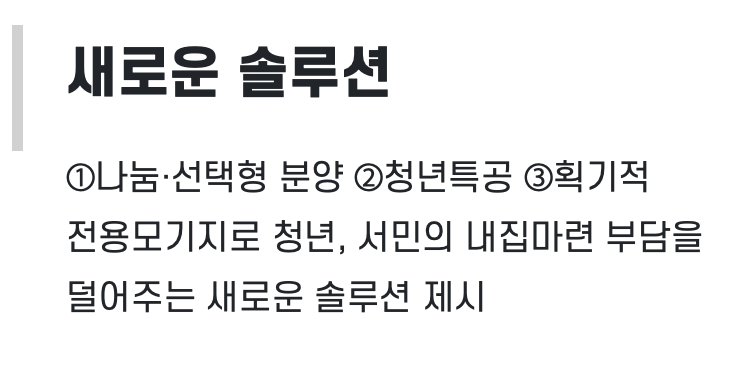 | 청년/신혼부부계층 임대주택 | 신도시조성 | 공공분양사업 공급 |