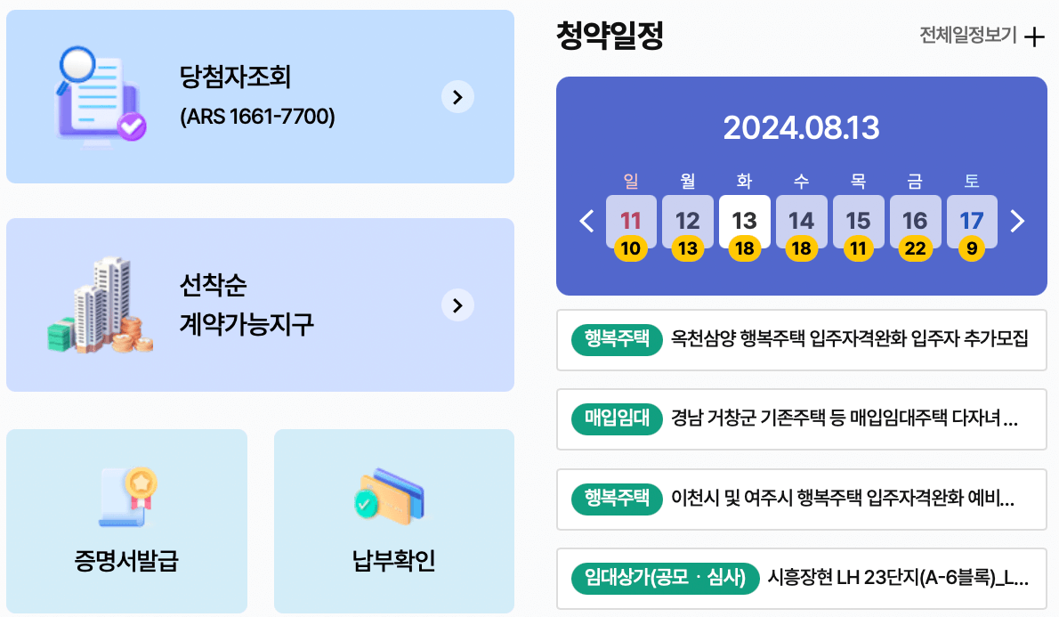 | 주택매도신청 | 당첨/낙찰자 명단 | 청약캘린더 |