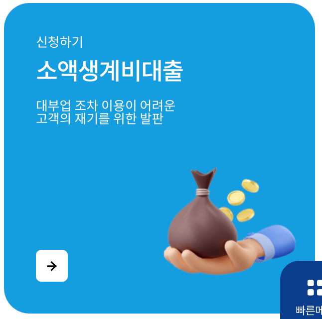 | 햇살론카드 | 소액생계비대출 | 민간사업수행기관 창업자금 | 미소드림적금 |